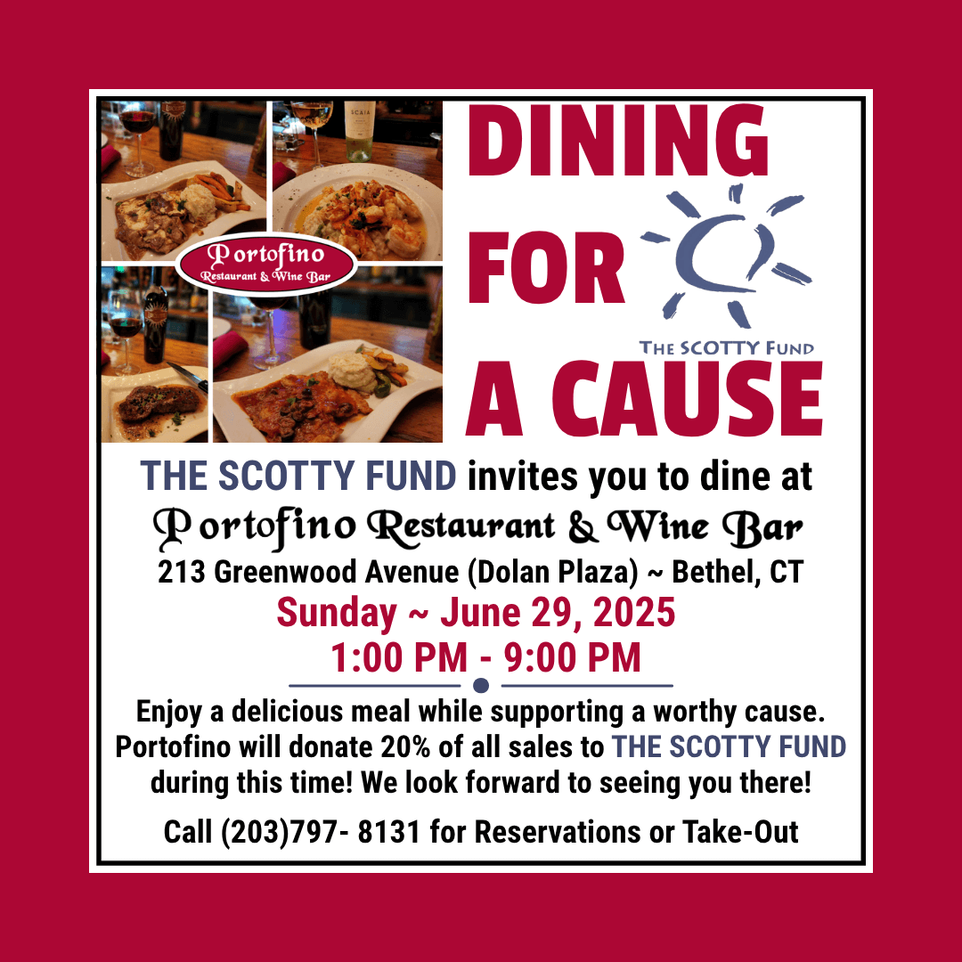 π£ This Sunday! Join us at Portofino Restaurant & Wine Bar in Bethel, CT for a special Fundraiser benefiting The Scotty Fund π
